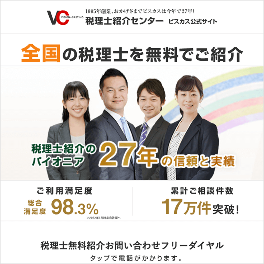 - 紹介料無料で税理士を紹介